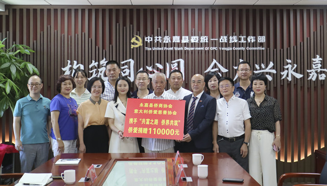 会长团一行在永嘉县行政中心举行捐助仪式,由意大利侨爱慈善协会和永嘉县侨商会共同向岩头镇捐赠11万元侨爱资金,助力永嘉民生事业,助推永嘉共富建设。本次捐助将用于岩头镇表山村至金山绛自然村段的公路项目,该公路全长5.1公里,宽6米,同时也是通往岩坦镇分水、大谢两村的民生联网公路。