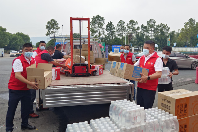10月4日上午,义乌侨商联合会会长王慧斌带领部分会长团成员赴义乌东(青口)高速口,为坚守在高速卡口一线的执勤工作人员送去了矿泉水、方便面、蛋糕、面包、抽纸、藿香正气水等120余箱生活物资,以实际行动履行商会的责任和担当。