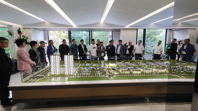 董邦云一行参观了万达广场江南里示范区,通过现场讲解员的讲解、沙盘建模及宣传片等,了解江南里项目方案、产业优势、规划发展等。