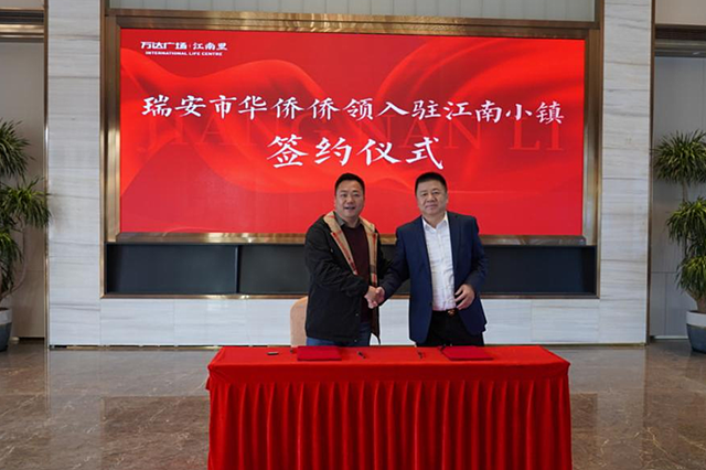 在签约仪式上,瑞安市侨商会及多名会员与万达广场江南小镇成功签订意向认购书,拟认购华侨总部大厦共5层合计6000平方米,价值5000余万元。此次项目意向签约标志着市侨商会总部的落地迈出了重要的一步。