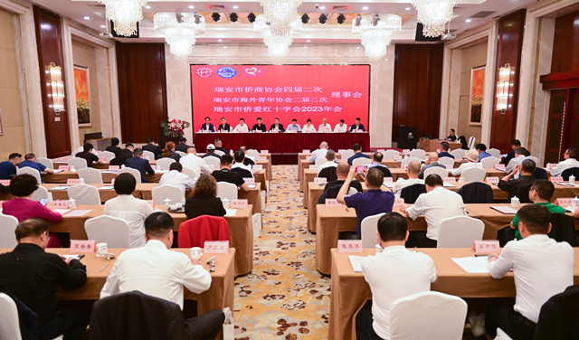 4月16日,瑞安市侨商会四届二次理事会顺利举行,会上分别听取和审议工作报告和财务工作报告。瑞安市委常委、统战部部长林圣赞出席会议,市委统战部副部长、市侨办主任李锋翰主持会议。