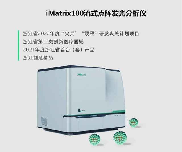 经初评、网络投票、线上/现场答辩、专家审评,浙江省侨商会副会长单位中翰盛泰生物技术股份有限公司生产的iMatrix100流式点阵发光分析仪荣获2022年度“创之星”杯中国体外诊断年度优秀创新产品(仪器)。