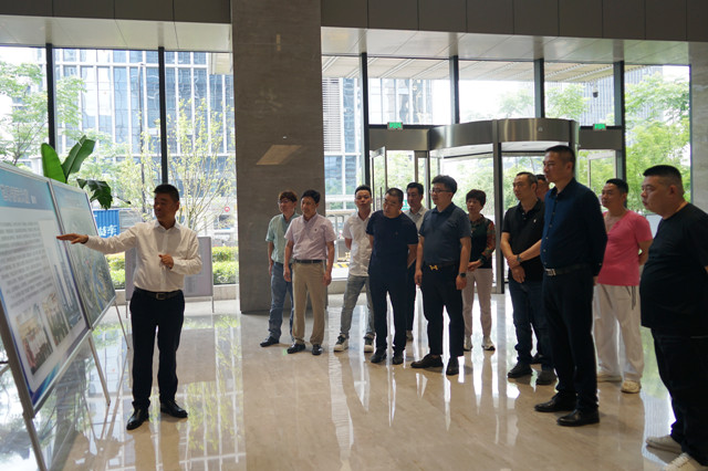 5月16日,舟山市侨商会会长陶性于一行11人到义乌侨商联合会考察交流。在中福广场6号楼一楼大厅,乌侨商联合会会长王慧斌向考察团成员介绍了世界侨商大厦的相关情况。