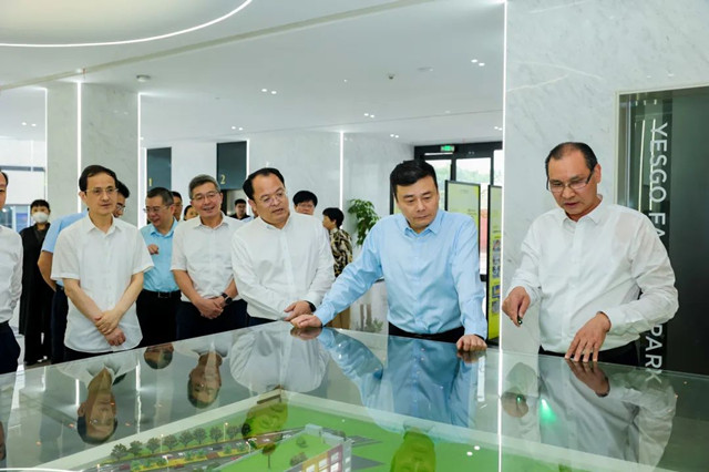 汤飞帆市长一行随后在施美副总裁的陪同下参观了斐戈·云裳谷设计师时尚服装展示展销平台、Y11时尚街区,深入了解园区业态及园区入驻企业发展状况,并现场与园区“简创尼”品牌负责人交流时尚纺织服装品牌培育孵化的基本情况。