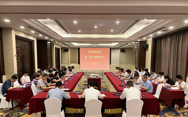 6月25日,舟山市侨商会三届十次理事会议在临城召开,市侨联党组书记、主席於立斌到会并讲话,党组成员、副主席徐宝俊列席会议,市侨商会会长、监事长、常务副会长、副会长、理事等共计37人参加会议。