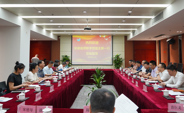 8月17日,安徽省侨联党组书记、主席李世蕴率考察团一行16人到访宁波市侨商会,并进行座谈交流。宁波市侨联党组书记、主席任建成陪同考察,宁波市侨商会常务副会长包荣升、傅炵,副会长陆文杰、陈建旭,常务理事翁志波、金皓、陈祥等出席座谈会。