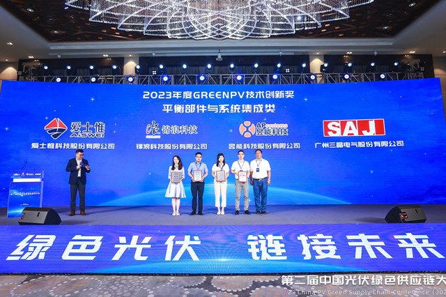 8月17日,由中国绿色供应链联盟光伏专委会设立的2023第二届“GREENPV大会奖”颁奖盛典隆重举行,昱能科技凭借其在光伏逆变器、储能系统领域的技术研发及产业化成果等方面做出的突出贡献,获评2023年度“GREENPV技术创新奖”。