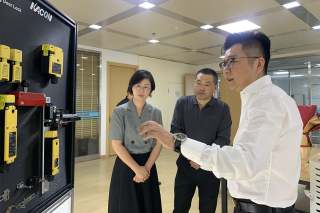 程苗向林海丹汇报了今年公司整体的运营情况、技术创新及新的战略方向。他说,为抢占国外市场,公司大力投入研发新品及导入全新的营销方法,历经两年,研发、测试、试用全新上市的安全门开关在推出后就备受市场关注。出口贸易虽受多方影响有所下降,但国内业务却是大幅增长,公司全体员工正在齐心合力做年度的冲刺工作,相信到年底一定会提交一份满意的答卷。此外,公司即将推出一款智能助理——凯昆大脑,标志着公司正式进入了基于工控行业的AI领域。