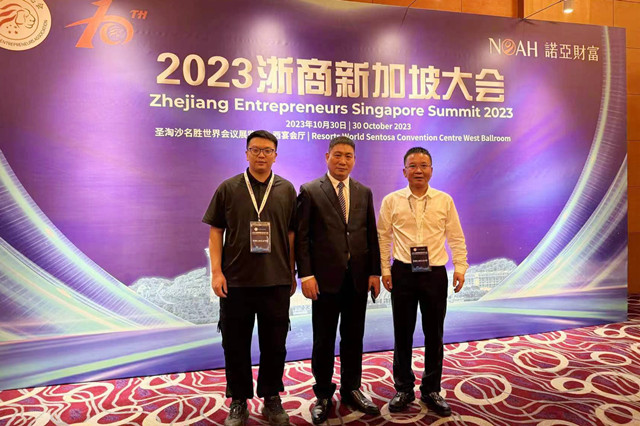 近日,由新加坡浙商总会主办、世界各国50个浙商关联社团协办的“2023年浙商新加坡大会”暨新加坡浙商总会10周年庆典在新加坡圣淘沙名胜世界会议中心隆重举行。来自五湖四海的各方嘉宾共聚狮城,通过资本、人才、技术、市场等要素对接,共画浙商全球发展新蓝图,共建交流合作新契机。浙江省侨商会常务理事、台州市侨商会常务副会长、恩森(台州)化学有限公司董事长辛建树,台州市侨商会副会长、缅甸浙江商会会长屠国定,台州市侨商会理事、温岭市顺风机动车检测有限公司董事长殷亮应邀参加盛会。