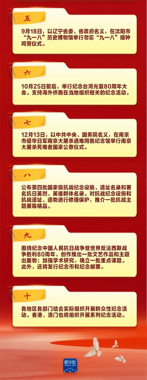 将公布第四批国家级抗战纪念设施、遗址名录和著名抗日英烈、英雄群体名录。