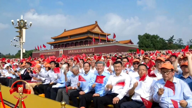 浙江省侨商会会长廖春荣,常务副会长丁列明、薛惊理、冯定献,副会长姚力军、翟京丽、贺凯琪、刘光新,温州市华侨总商会会长夏烈,丽水市侨商会会长卓旭光,宁波市侨商会监事长傅旭敏等受邀参加纪念中国人民抗日战争胜利80周年大会和观礼阅兵活动。