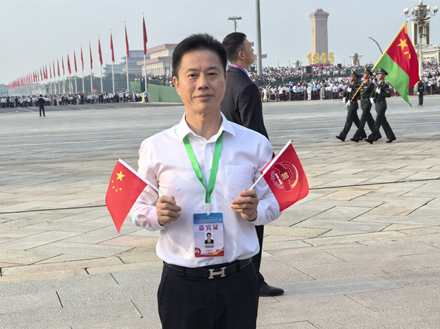 省侨商会副会长姚力军:时隔数年,再次来到天安门广场见证历史盛事,我内心的澎湃与激动,难以言表。与十年前相比,我们的人民军队装备更强大,技术更先进,展现出的实力令人震撼。我们这一代何其有幸,生在当今之中国!回想艰苦卓绝的抗战岁月,是我们的先辈用血肉之躯筑起民族救亡的长城。八十年沧桑巨变,正是这些不屈的身影,铸就了今日中国不可欺、不可辱的底气。作为一名科技工作者,我感到肩上的责任重大。阅兵场上展示的国之重器让我更加深刻认识到,核心技术是国之命脉,自主创新是必由之路。现场的掌声和欢呼就像催人奋进的号角,激励我将这份荣耀感转化为勇攀科技高峰的无限动力。祝愿我们伟大的祖国,繁荣昌盛,国泰民安!