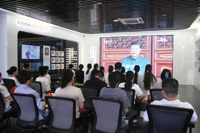 现场气氛庄严隆重,时不时响起阵阵掌声。大屏幕前,每位员工都神情专注,大家认真聆听了习近平总书记发表的重要讲话。习近平总书记铿锵有力的话语,深刻阐述了新中国取得的伟大成就,擘画了未来发展的宏伟蓝图,令在场每一位员工倍感振奋,深受鼓舞。这场盛大阅兵,不仅是国家硬实力和民族精神的集中展现,更让大家感受到祖国综合国力的强大,更为自己能生活在这样一个强大、和平的国度里感到无比的骄傲与自豪。