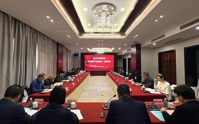 12月23日,舟山市侨商会四届四次理事会、监事会会议在财富大酒店顺利召开。舟山市侨联副主席缪臻彦出席会议并讲话,浙江省侨商会副会长、舟山市侨商会会长陶性于;市侨商会监事长徐平安,常务副会长刘科岑,副会长方松华、王海凤、袁亚珍、乐信龙、曾永祥、袁红波、荣伟、夏鹏云、顾建军、戴琪达、毛剑杰,秘书长林皆赞等26人参加会议。会议由常务副会长刘科岑主持。