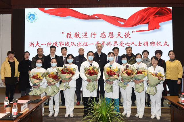 新冠疫情期间,南慧控股党支部党员代表向浙大一院援鄂战队献上鲜花和祝福