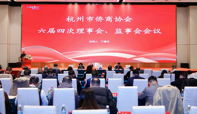 六届四次理事会、监事会会议由执行会长丁德坤主持。会议听取并审议通过了《杭州市侨商协会2025年工作报告》《2025年监事会工作报告》《财务报告》。大会决议指出,2025年,协会在市委市政府坚强领导和市委统战部、市侨办具体指导下,深入践行“服务立会、依法办会、创新强会、以侨兴会”发展理念,团结带领广大侨商,在服务国家战略、助力“两个先行”、参与“共富示范”、推动杭州经济社会高质量发展中展现了侨商担当。