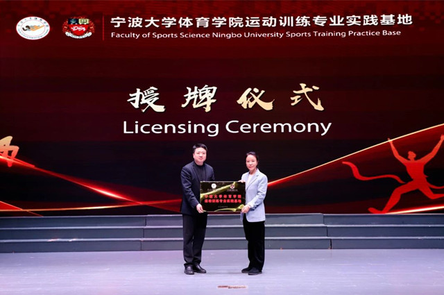 随后,双方签署协议,顾耀东院长向陈辉董事长授予“宁波大学运动训练专业实践基地”牌匾,此次授牌标志着两校合作迈入了实质性、深层次的新阶段。