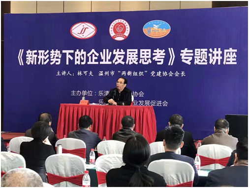11月27日,省侨商会、乐清市侨商会与乐清市中小企业发展促进会、乐清市经济师协会联合举办《新形势下的企业发展思考》专题培训,邀请温州市“两新组织”党建协会会长林可夫主讲。市科协主席陈全满、市委统战部部务成员顾立文、市侨商会会长李方西、市经济师协会会长吴炳池、市中小企业发展促进会会长张建芳及三个协会的会员企业共130多人参加了讲座。