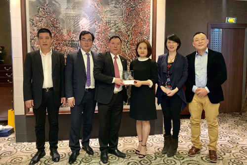曹婉婉部长在致辞中说,本次来欧洲是对法国和捷克经贸考察的同时,进行深入对接,积极为6月初金华经贸团访欧做前期准备工作。此次代表团在顺利与捷克及夏斗湖市友好对接后,在巴黎深深感受到了法国金华商会的凝聚力和活力,非常感谢张磊会长及法国金华商会的热情接待和对家乡发展的鼎力相助。她表示,由金华市委市政府组织的大型贸易投资推介活动在法国举行,希望能够得到中国驻法使馆的大力支持。