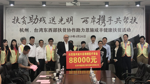 中翰盛泰生物技术股份有限公司在得知余杭区对口帮扶国家级贫困县咸丰县在此次健康扶贫费用还有缺口时,公司董事长周旭一一行专程前往主动捐助资金8.8万元,承担了这次活动医保承保外的部分器材费用,积极助力余杭精准健康扶贫新模式。
